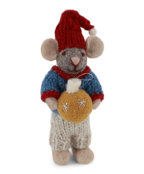 Un Air de Féérie Scandinave pour Votre Noël : La Souris à la boule de Noël en Laine Feutrée Gry & Sif
